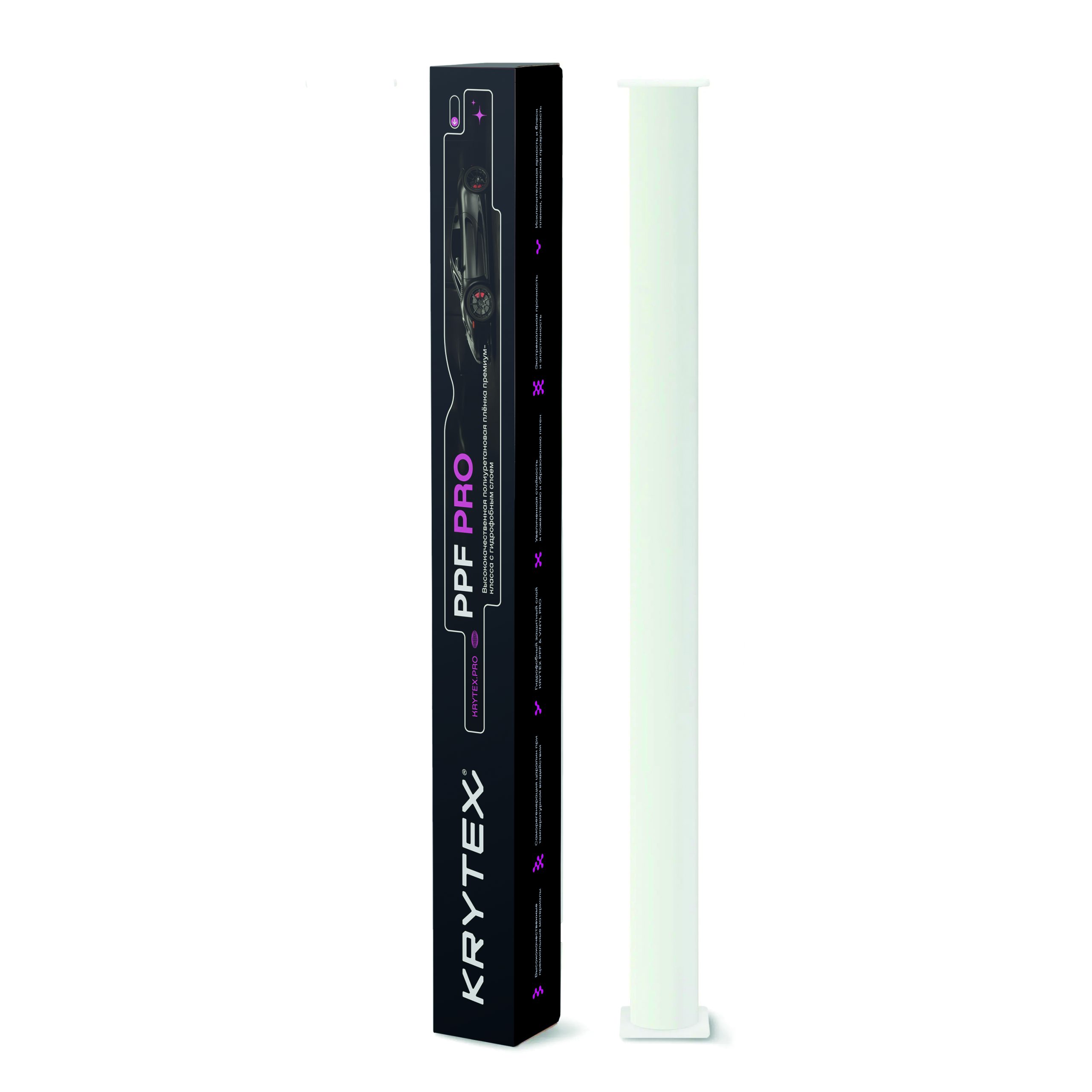 KRYTEX PRO PPF — премиальный защитный материал, изготовленный с применением компонентов ведущих производителей, включая Lubrizol и Bostik. Пленка оснащена твердым topcoat, благодаря чему устойчива к выгоранию и пожелтению.